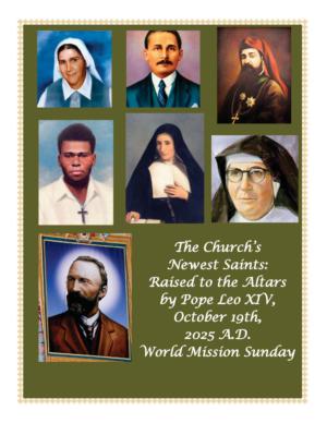 October the 13th this year marked the 100th Anniversary of the great sign of the Miracle of the Sun at Fatima, Portugal. I have used for our Bulletin front cover this striking picture, reproduced in The Latin Mass Magazine, of the people awestruck by what they are seeing in the sky above.